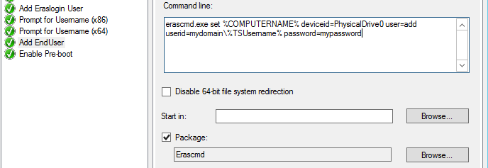 Sometimes when running an SCCM task sequence, you want to prompt for input, for example to populate a Task Sequence variable that you will use later. In this example, I am encrypting a laptop HDD (SED) using Wave ERAS, and I’m using a command-line tool that populates the pre-boot authentication screen with the AD account of the laptop end-user. This runs during a post-deployment task sequence that provisions the encryption. As each laptop is prepared for a different end user, I needed to prompt for the user account during the task sequence, then pass the input to a script that adds the account to the encryption pre-boot.