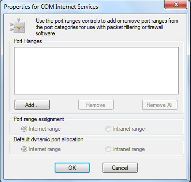 Also, the ‘Connection-oriented TCP/IP’ protocol is set to use ‘Intranet Range’ when you view the DCOM properties of the machine: