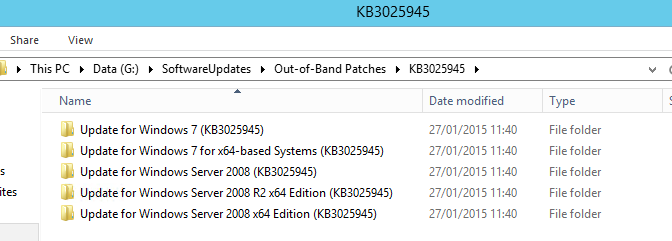 $Source = "\\sccmserver-01\SoftwareUpdates\Out-of-Band Patches\KB3025945\Update for Windows 7 (KB3025945)"