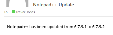 Send-MailMessage @EmailParams -Subject "Notepad++ Update" -Body "Notepad++ has been updated from $CurrentNotepadVersion to $NewNotepadVersion"