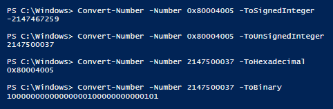 I extracted a list of 11,839 error codes and descriptions using the SrsResource.dll, as described in the previous post, and exported them into a csv file.  Using the PowerShell function below, I converted each error code to give the hex and decimal codes for each.  In Configuration Manager, the log files and reports tend to use the hexadecimal value or the ‘signed integer’ decimal value for the error code, however WMI stores the codes as ‘unsigned integers’ (always positive or zero), therefore I have included all three for easy referencing.