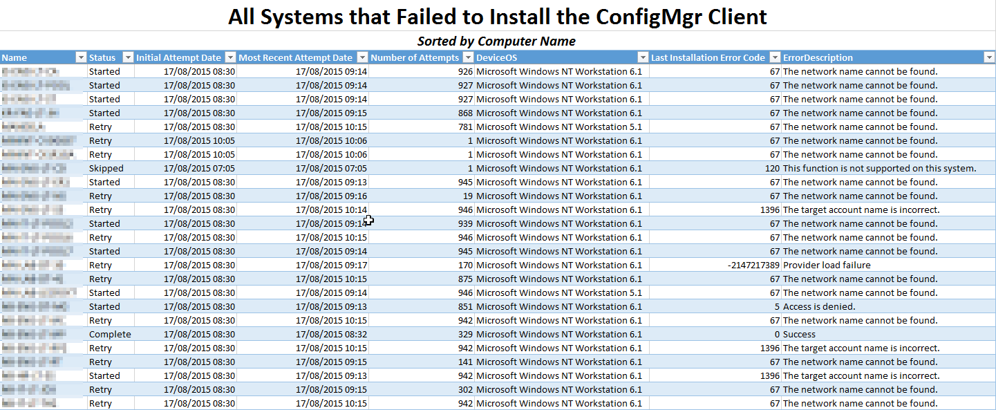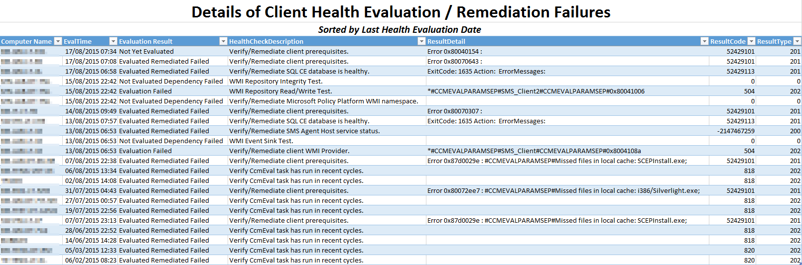 Today I am pleased to make available the first of my free reports for System Center Configuration Manager 2012 and onward – a client health report. These reports have been created in Microsoft Excel and use data connections to the ConfigMgr database, which allows us to pull a large amount of data into a single report, and display it both summarily, graphically and in data tables, without the need to drill down into further reports or navigate to different locations in the ConfigMgr console to find the data you need.