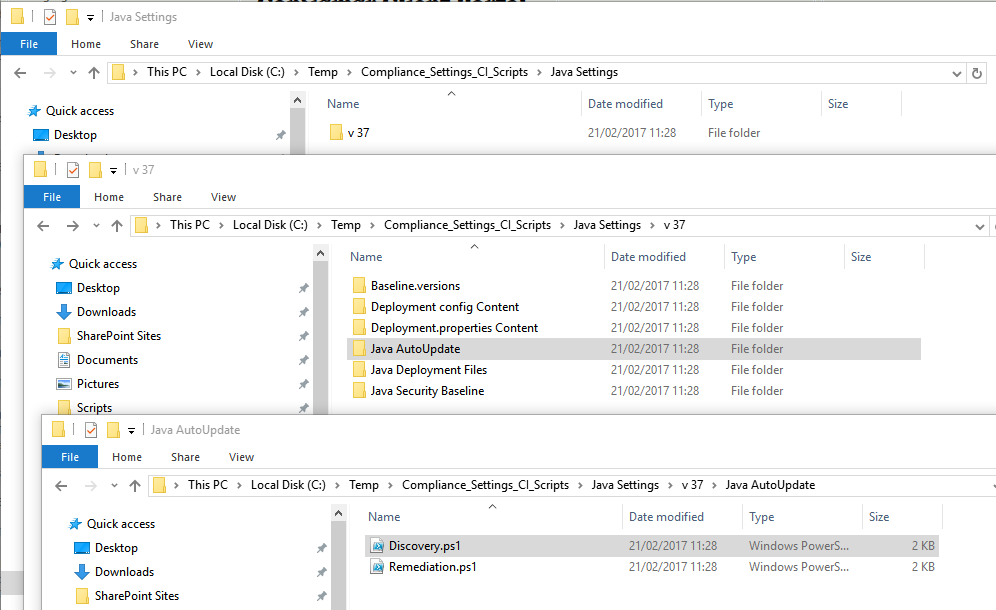 Here you can see an example of the output for my “Java Settings” Configuration item. A subdirectory is created for the current package version, then subdirectories under that for each Configuration setting, then the discovery and remediation scripts for that setting.