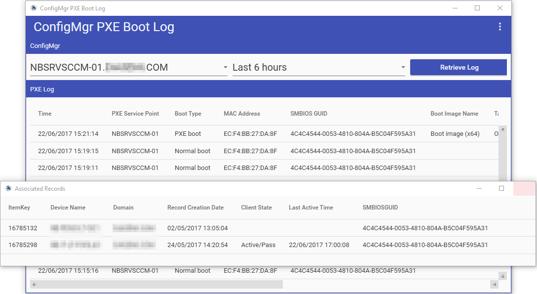 Today I’m releasing a new tool for ConfigMgr admins and IT support staff!  This tool displays PXE boot events in an easy-to-view format and provides a history of PXE boot attempts on a distribution point during a selected time period. The tool can also display any records that exist in ConfigMgr associated with a device based on its SMBIOS GUID. The ‘log’ entries returned come from the status messages sent by the distribution point and not from the SMSPXE.log.