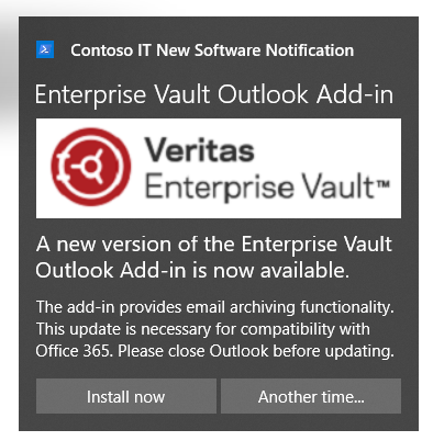 $SubtitleText = "A new version of the Enterprise Vault Outlook Add-in is now available."