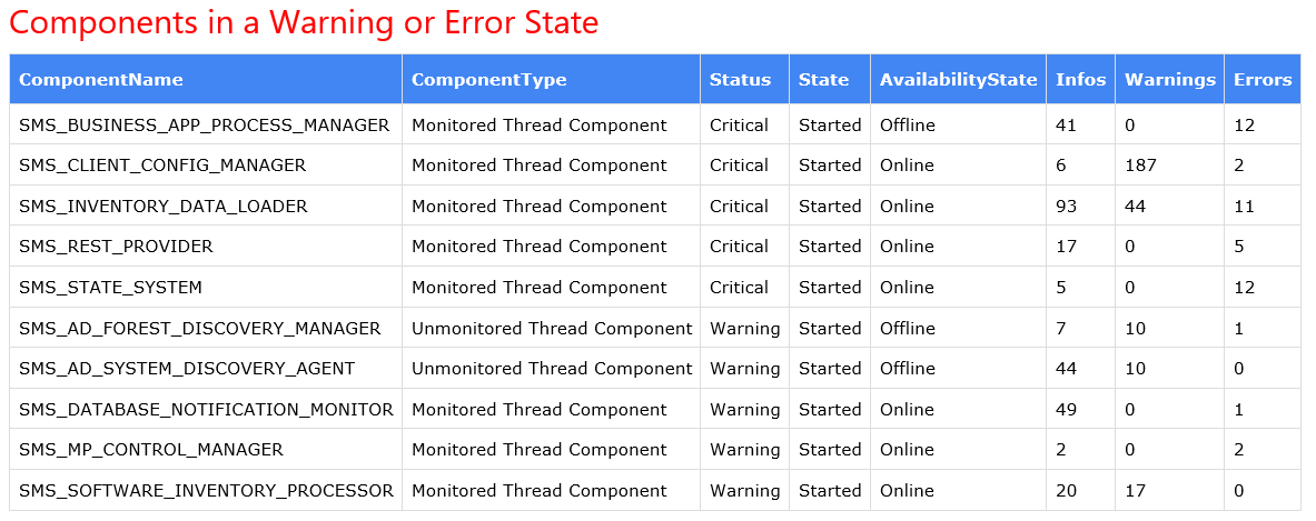 HTML Report for SCCM Site Component Warnings and Errors