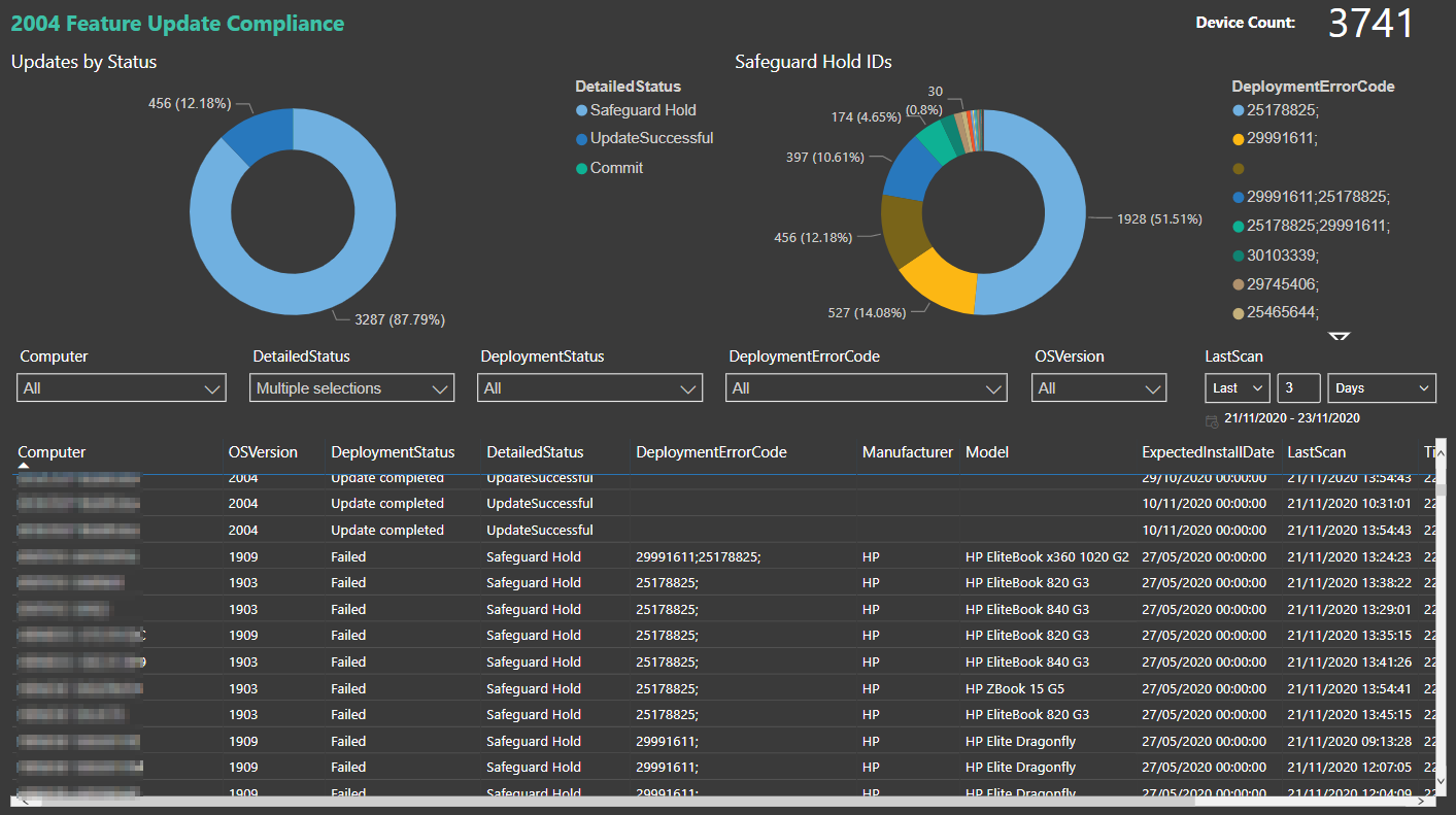 Here’s a screenshot of what I ended up with. You can filter the data to view devices with Safeguard holds, for example, which since Windows 10 2004 has been a show stopper for many wanting to upgrade…