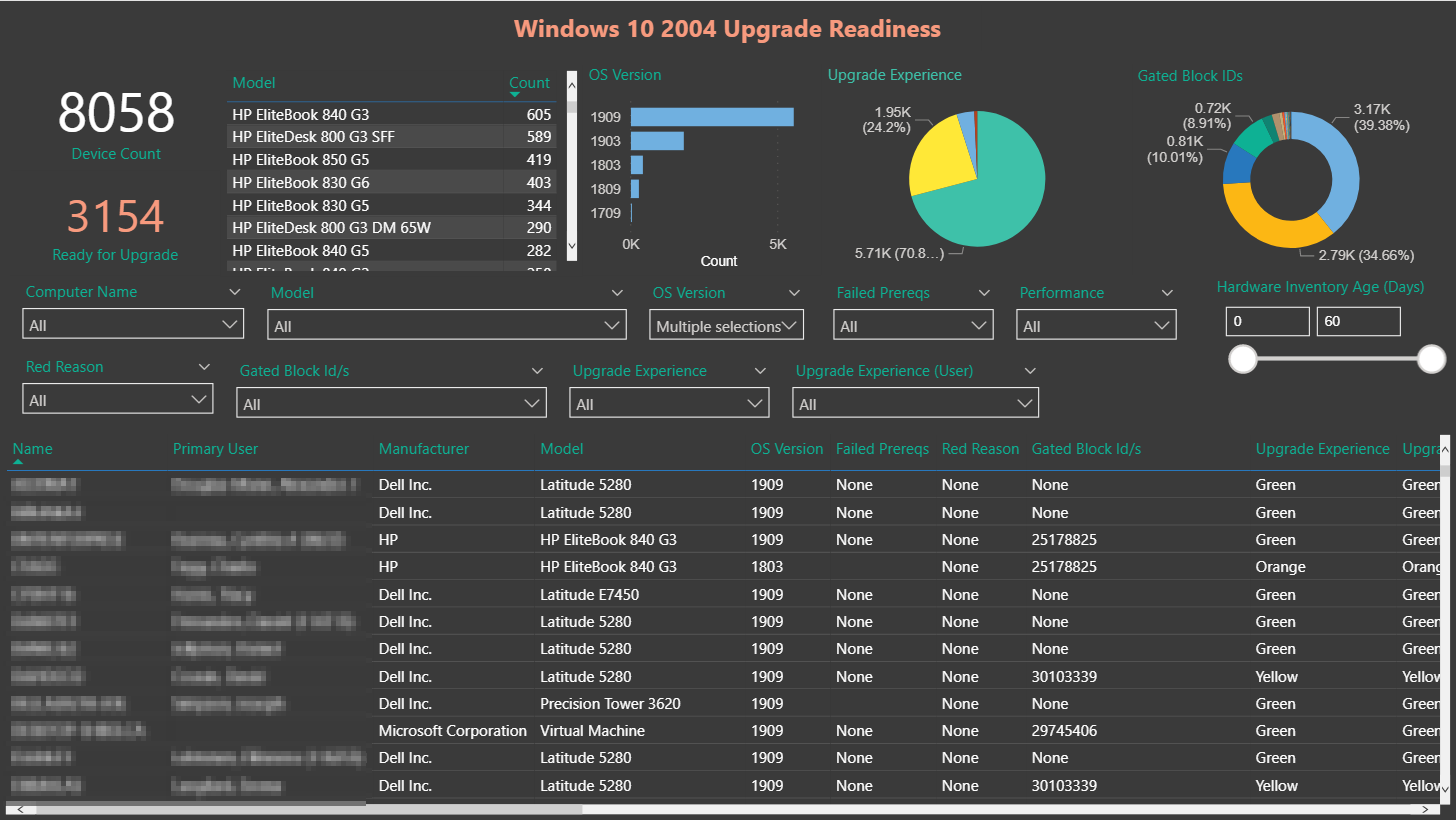 Following on from my previous post where I shared a PowerBI report that provides information on Windows 10 feature update blocks using Update Compliance and Desktop Analytics, in this post I will share another report that exposes similar data, but this time built from custom hardware inventory data in MEMCM.