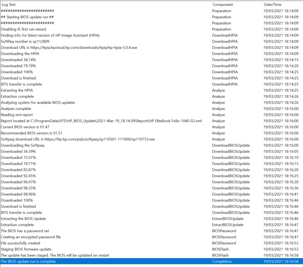 Write-Log -Message "This BIOS update run is complete. Have a nice day!" -Component "Completion" |