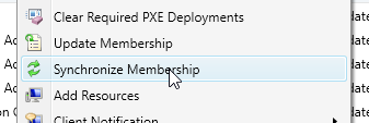 No, I’m kidding. Actually – at the time of writing – you can’t just right-click the collection in the console and set a sync schedule as you can an evaluation schedule. You could initiate a one-time full sync using the Synchronize Membership option: