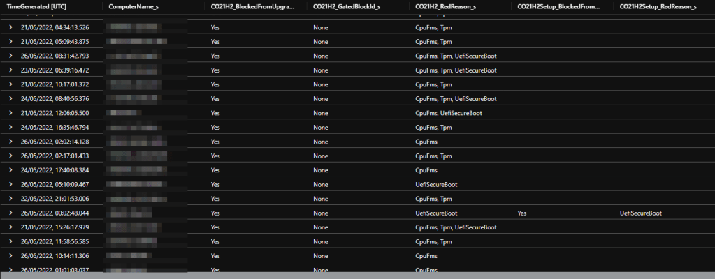 | where CO21H2_BlockedFromUpgrade_s == "Yes" or CO21H2Setup_BlockedFromUpgrade_s == "Yes"