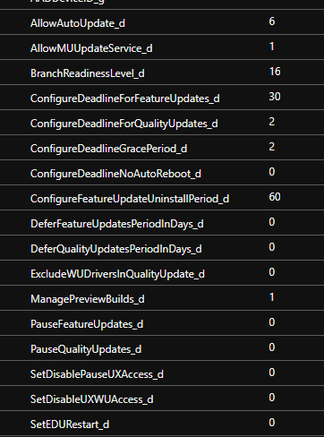 | SU_WUClientInfo_CL | Some general WU client info I find useful such as whether a reboot is pending from SUs, the WU service start-up type, whether AutoUpdate is enabled, if a reminder notification has been displayed and when, when a reboot may be scheduled for WUfB. |