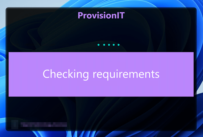The first thing it does it to run a requirements check. This assesses the workstation to figure out what needs to be done to bring it to the corporate standard. The reason for running this assessment initially is that ProvisionIT can actually be run on any workstation in any state – it will only do whatever actions are needed. For example, if it’s already AAD joined then it will skip that part and just do the rest.