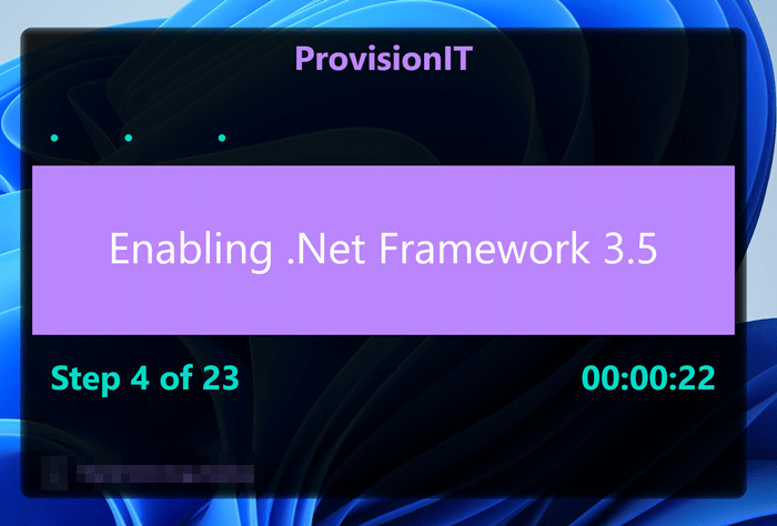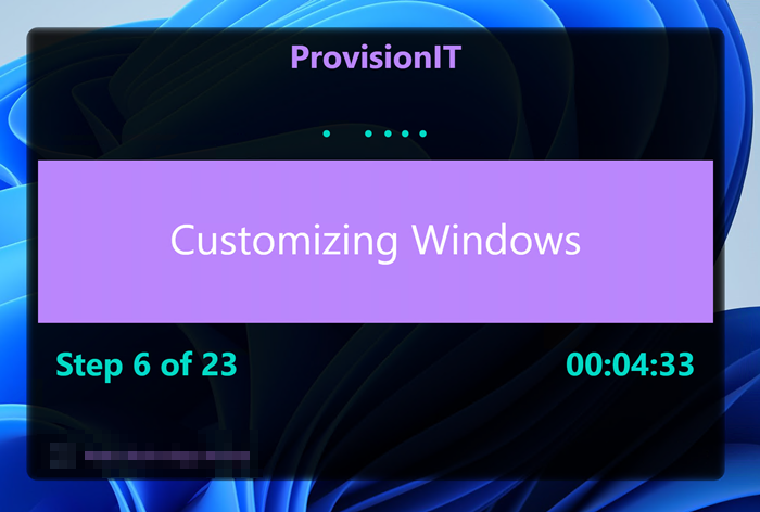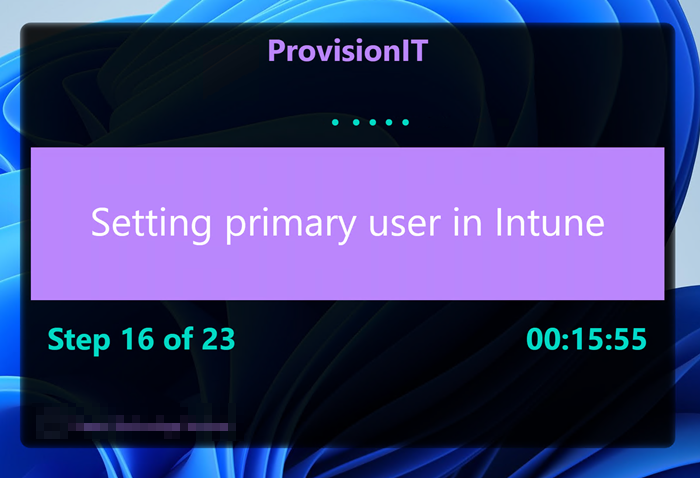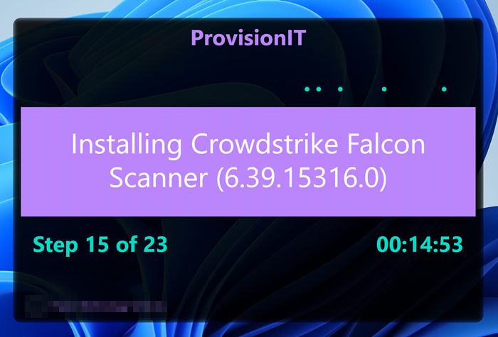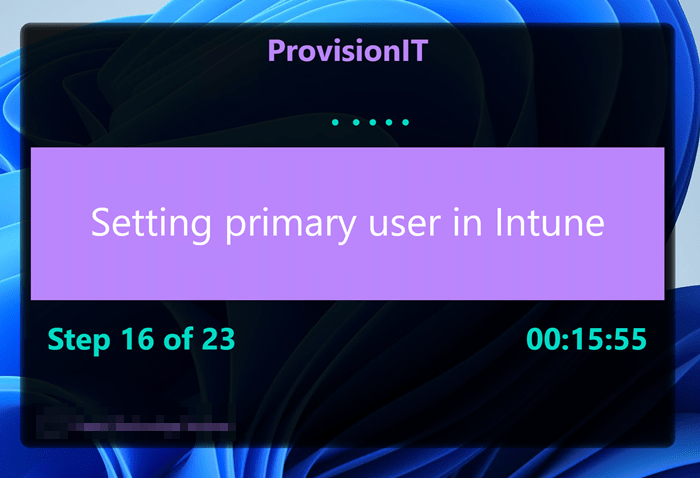Once the files are downloaded, it hands off to the main provisioning script which creates a WPF window which is used to track the progress of the provisioning activities.