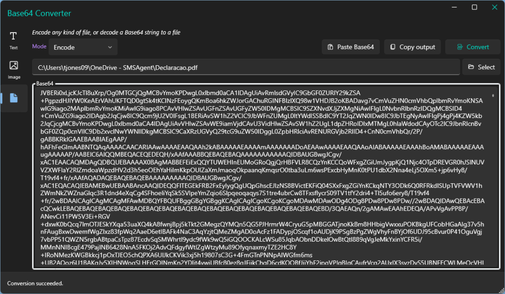 Can you please provide your base64 converter based on which programming language and this is more helpful if you provide source code text file thanks.