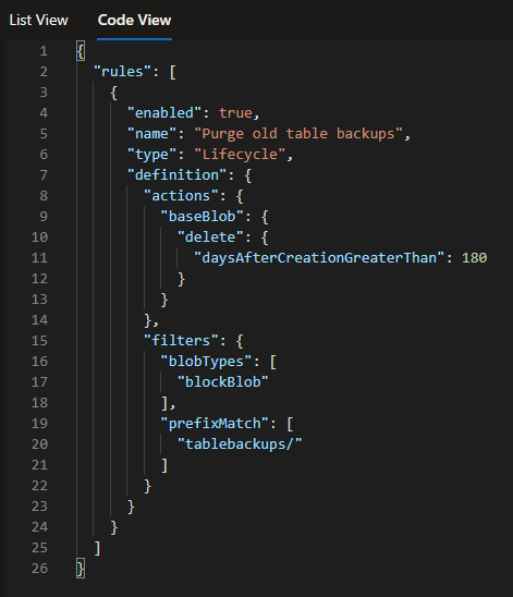 …and you can use lifecycle management rules on the storage containers to define how long you want to retain backups for.