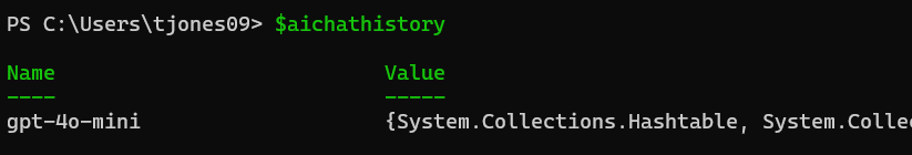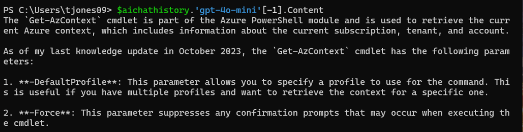 $aichathistory.'gpt-4o-mini'[-1].Content